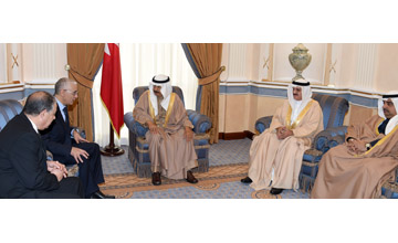 Manama, March 7 (BNA): His Royal Highness Prime Minister Prince Khalifa bin Salman Al Khalifa received at Gudaibiya Palace today Moroccan parliament Speaker Rasheed Al-Talibi Al-Alami and his accompanying delegation, in the presence of Representatives Council Speaker Ahmed Al-Mulla.
