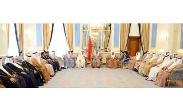 Manama, May 3 (BNA): His Royal Highness Prime Minister Prince Khalifa bin Salman Al Khalifa received at the Gudaibiya Palace today several Royal Family members and senior state officials, led by the President of the Supreme Council for Islamic Affairs, Shaikh Abdulla bin Khalid Al Khalifa.