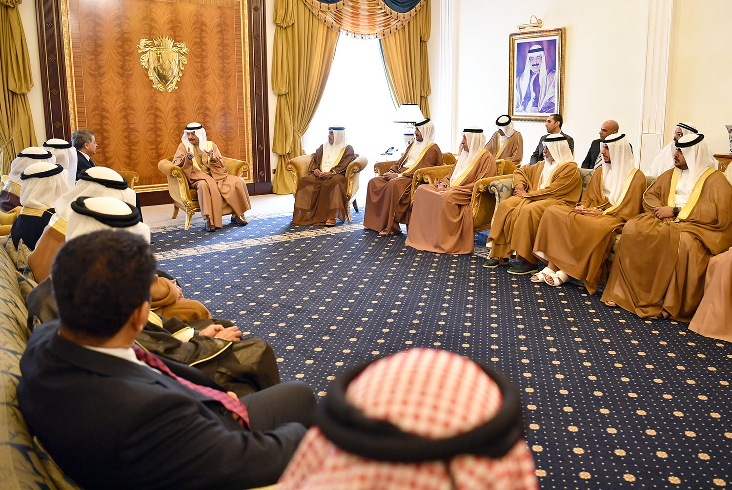 Manama, Oct. 8 (BNA): His Royal Highness Prime Minister Prince Khalifa bin Salman Al Khalifa received at his palace in Riffa today the Hussaini Processions General Authority and Heads of the community centres (Ma’atams) marking the end of Ashoora season. He praised tolerance and freedom that characterise the Bahraini society, adding that co-existence and cohesion have always formed the core of relations between the Bahraini people. HRH the Premier lauded the one-family spirit prevailing in the Bahraini community, affirming everlasting strong ties binding the Bahraini people throughout history. He underlined unity in Bahrain, paying tribute to the people for their awareness and honourable patriotic stances. He pointed out that preserving the advanced model of freedom is the responsibility of all, emphasising the Bahraini people’s respect of doctrinal and intellectual diversity as a main pillar for national unity. HRH the Prime Minister affirmed that Bahrain has presented to the world throughout its history stories of success concerning unity, co-existence as well as intellectual, cultural, religious and doctrinal pluralism. He underscored the role of houses of worship in maintaining social unity, pointing out that religious freedom in Bahrain is an inherent approach emanating from Islam and its noble precepts. HRH the Premier hailed the efforts of Head and members of the Hussaini Processions General Authority in commemorating religious occasions and promoting Bahrain’s cultural and social heritage. He stressed that the Bahraini society has always been and will remain one community characterised by tolerance and co-existence. He urged to hold on to those values that were anchored by the fathers and grandfathers for the best interest of the nation. He paid tribute to the Bahraini people for their efforts and dedication to serve the nation, calling on them to stand united. The Hussaini Processions General Authority Head and members extended thanks and appreciation to HRH the Prime Minister for the facilities provided by the government to ensure success of Ashoora season. They stressed that his directives had a great impact on distinction of this year’s event, lauding the unflinching support of HRH the Premier to the occasion and his keenness to further foster social cohesion and consolidate the spirit of tolerance and co-existence.