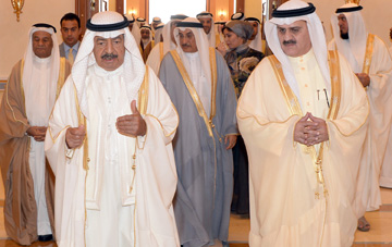 HRH Premier made the statements while receiving the representatives of the legislative and judicial branches, led by the Speaker of the Council of Representatives Ahmed bin Ibrahim Al-Mulla, the Chairman of the Shura Council Ali bin Saleh Al Saleh and the President of the Supreme Judicial Council Chancellor Salim bin Mohammed Al-Kuwairi, in the presence of former Speaker Khalifa bin Ahmed Al Dhahrani.