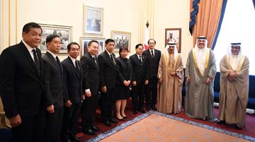 HRH the Premier said the friendship ties between Bahrain and Thailand are robust and deep-rooted and we aspire for more visits by Thai delegations to Bahrain and opening new horizons of bilateral cooperation in various sectors. HRH cited the important role undertaken by the Bahraini-Thai Friendship Committee in developing the bilateral ties, especially as it includes the membership of distinguished parliamentarians in both countries. HRH the Premier stressed the necessity to proceed with the invigoration of the bilateral agreements, mainly in the economic, investment and commercial areas.