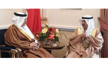 Manama, Oct. 16 (BNA): His Royal Highness Prime Minister Prince Khalifa bin Salman Al Khalifa received at Gudaibiya Palace today His Royal Highness Prince Salman bin Hamad Al Khalifa, Crown Prince, Deputy Supreme Commander and First Deputy Premier. They hailed Bahrain's momentum in organising specialised conferences and exhibitions which reflects confidence in the kingdom's ability to host major events. They also asserted the government's ongoing support to the exhibitions and conferences industry given its essential role in backing Bahrain's strategy to diversify sources of revenues. HRH the Prime Minister and HRH the Crown Prince affirmed that Bahrain's continuous hosting of major international security and military functions reflects the kingdom's keenness to back all efforts aimed at promoting security and stability. This, they added, shows the strong and strategic partnership between Bahrain and the rest of the world in combating terrorism and providing a secure and stable environment worldwide. HRH the Premier and HRH the Crown Prince reviewed a number of initiatives aimed at developing the governmental work and unifying efforts to improve performance and optimise services for citizens.