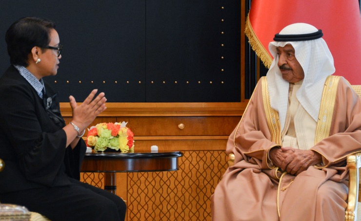 Manama, Sept. 3 (BNA): His Royal Highness Prince Khalifa bin Salman Al Khalifa the Prime Minister received Indonesia’s Foreign Affairs Minister Retno Marsudi, currently visiting Bahrain.