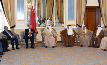 Manama, March 21 (BNA): His Royal Highness Prime Minister Prince Khalifa bin Salman Al Khalifa received at Gudaibiya Palace today Jordanian Senate Chairman Faisal Akef Fayez and his accompanying delegation, in the presence of His Royal Highness Prince Salman bin Hamad Al Khalifa, Crown Prince, Deputy Supreme Commander and First Deputy Premier.