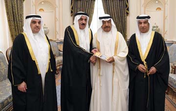 Manama, Sep. 2 (BNA): HRH Prime Minister Prince Khalifa bin Salman Al Khalifa, today at the Gudaibiya Palace, received Jafaar bin Rajab and a number of his brothers who presented to HRH the Premier a book titled (An overview of the history of Matam bin Rajab), one of the oldest social institutions that played a key role in enriching social, cultural and religious activities Bahrain.