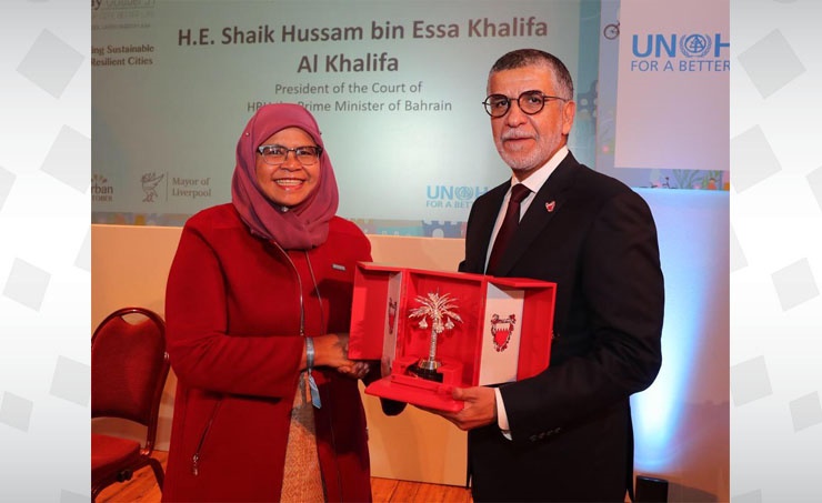 In an international celebration marking the World Cities Day 2018 which was held in St George's Hall, Liverpool, the UK, she expressed deep-felt respect to HRH the Premier for his unflinching commitment to supporting sustainable urban growth and improving the living conditions of needy people by launching initiatives to back local and international development. She affirmed that HRH the Prime Minister has contributed enormously to boosting Bahrain's international status on the map of sustainable development, especially after launching the His Royal Highness Prince Khalifa Bin Salman Al Khalifa Award for Sustainable Development. She also praised the efforts of HRH the Premier's Court to support strategies aimed at promoting sustainable development in Bahrain. She also pointed out the effective contribution to preparing the kingdom's first Voluntary National Review (VNR) report which was submitted in New York last July.