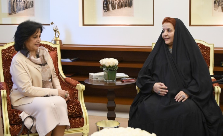 Manama, Mar. 19 (BNA): Her Royal Highness Princess Sabeeka bint Ibrahim Al Khalifa, Wife of His Majesty the King and President of the Supreme Council for Women (SCW), received today President of Bahrain Authority for Culture and Antiquities (BACA) Shaikha Mai bint Mohammed Al Khalifa. She lauded the key role played by BACA in preserving the kingdom's civilisational and cultural heritage, congratulating Shaikha Mai on Bahrain's recent international achievements. She underlined the need to boost the cultural and artistic infrastructure to maintain the kingdom's status as an intellectual hub. Shaikha Mai expressed heartfelt thanks and gratitude to HRH Princess Sabeeka for her unwavering support to the efforts to preserve the kingdom's cultural identity and project its civilisational image. She also praised substantial support given to Bahraini women, describing it as an incentive to exert more efforts to stand out and excel in contributing to nation-building.