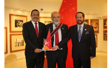 He dedicated the award to HM the King who advocates the values and principles of co-existence, tolerance and peace in the Kingdom of Bahrain, following thus in the steps of fathers and forefathers.