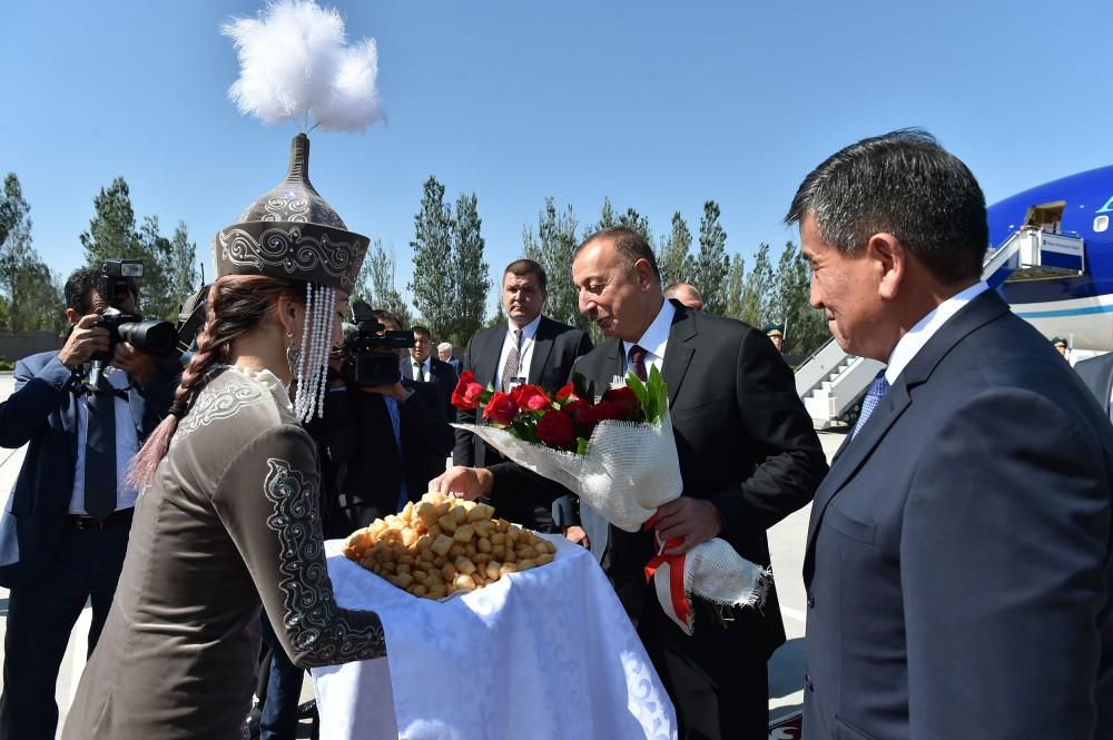 President Aliyev was welcomed by Kyrgyzstan’s Prime Minister Sooronbay Jeenbekov and other high-raking state and government representatives.