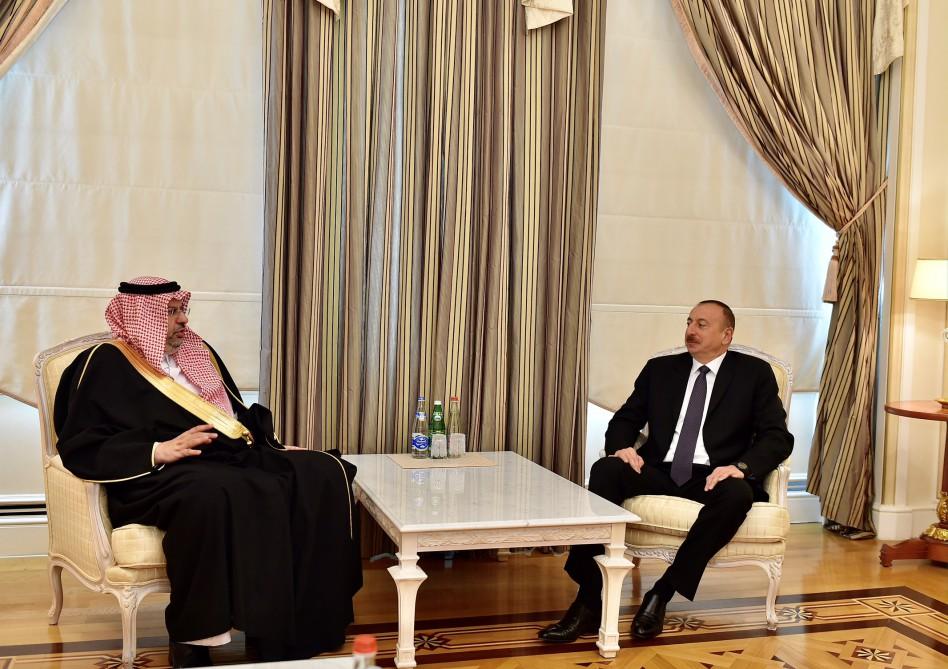 Baku, Azerbaijan, Apr. 5 Trend: President of the Republic of Azerbaijan Ilham Aliyev has today received President of the Islamic Solidarity Sports Federation (ISSF) and President of Saudi Arabia’s National Olympic Committee Prince Abdullah bin Mosaad bin Abdulaziz al Saud. ISSF President expressed his confidence that the 4th Islamic Solidarity Games will be successfully held in Azerbaijan. He hailed the importance of the fact that more than 3,000 athletes will compete in this major sporting event. President Ilham Aliyev thanked President of the Islamic Solidarity Sports Federation Prince Abdullah bin Mosaad bin Abdulaziz al Saud for his support for the 4th Islamic Solidarity Games. The head of state noted with pleasure that all the preparatory work for the 4th Islamic Solidarity Games has been done, adding Azerbaijan is ready to receive numerous athletes from brotherly countries. Prince Abdullah bin Mosaad bin Abdulaziz al Saud hailed the increasing number of tourists from Saudi Arabia to Azerbaijan in recent years, underlining the existence of all necessary opportunities for developing tourism in the country. Praising the fact that the number of tourists from Saudi Arabia to Azerbaijan has increased by several times, President Ilham Aliyev noted that this contributed to the strengthening of bilateral relations between the two countries. Prince Abdullah bin Mosaad bin Abdulaziz al Saud noted that relations with Azerbaijan are of pivotal importance to his country, adding that each time he visits Azerbaijan the leadership of Saudi Arabia hails the importance of Azerbaijan and gives instructions to develop relations with the country.