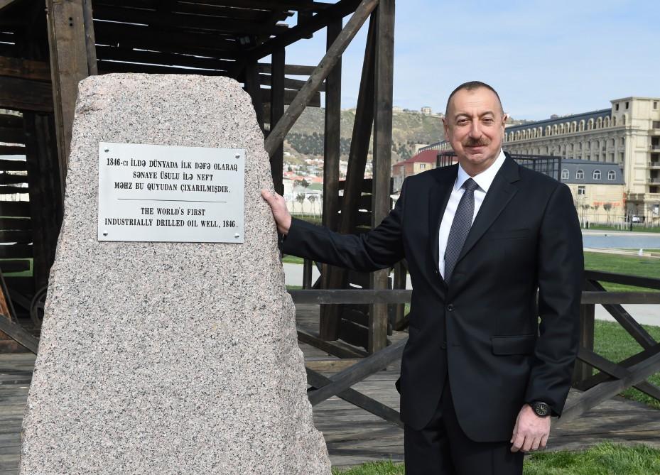 President of the Republic of Azerbaijan Ilham Aliyev viewed the newly reconstructed well in SOCAR's Bibiheybat field, the world`s first mechanically drilled oil facility Apr. 26.