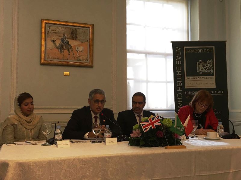 During the meeting that was attended by the Ambassador of the Kingdom of Bahrain Shaikh Fawaz bin Mohammed Al Khalifa and a number of members of the British companies and institutions interested in trade with Bahrain, the minister delivered a speech stated that "Our two nations have enjoyed formal relations for many years as evidenced by our bicentennial celebrations in this year. However, exactly 200 years prior the first East India company presence was established in Bahrain in 1616."