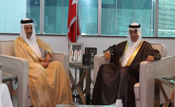 Manama, Oct. 4 (BNA): Industry, Commerce & Tourism Minister Zayed R. Alzayani received Secretary General of the Gulf Cooperation Council (GCC), Dr. Abdullatif bin Rashid Alzayani. They discussed several issues and topic of economic concern and joint Gulf action in trade, industry and tourism fields. As well as means of enhancing cooperation and integration among GCC in those areas. They also reviewed cooperation between the ministry and Secretariat General of the GCC in administrative, regulatory and the protection of industrial property areas. And to consider the use of advanced services provided by GCC Patent Centre in supporting national offices, inventors and developing external relations with international organisation specialised in intellectual property and industry. The minister accompanied the Secretary General in a tour to a number of ministry facilities and front offices, in particular offices of Precious Metals & Gem Testing, Investors Centre and Consumer Protection, where the minister briefed on the services provided by the ministry. The GCC Secretary-General appreciates the successful efforts undertaken by the ministry to enhance economic growth in Bahrain and provide a stimulating environment to attract investments and develop of industry, commerce and tourism sectors.