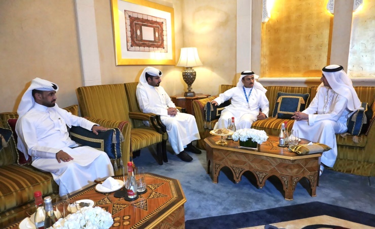 Dubai, Oct. 6 (BNA): Information Minister Ramzan bin Abdullah Al Nuaimi met with CEO of Dubai Media Incorporated (DMI) Mohamed Al Mulla on the sidelines of the Arab Media Forum. The minister hailed the depth of the media cooperation between Bahrain and the United Arab Emirates in general and with Dubai, in particular. He also stressed the significance of the efforts being exerted in media exchanges and training that strengthen cooperation and expand its opportunities. Al Mulla briefed Al Nuaimi on the administrative and legal aspects of the Dubai Media Incorporated. The meeting reviewed ways to enhance creativity and standards through a highly motivating media ecosystem.