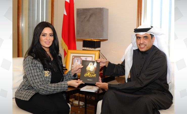 Books presented to the Information Minister were (A focus on speeches of Hamad bin Isa), (National vision of Hamad bin Isa) by Dr. Lulua Bu-Dulama; (Lessons in constitutional culture on dealing with local cultures in companies) by Dr. Jassim Haji; (Civil society monitoring of the parliamentary elections in the Kingdom of Bahrain) by Muhsin Ali Al Ghurari and a copy of Master's thesis of researcher Salman Ali in media obtained from the Faculty of Arts, University of Bahrain, titled (The role of social media networks in influencing consumer behavior in the Kingdom of Bahrain).