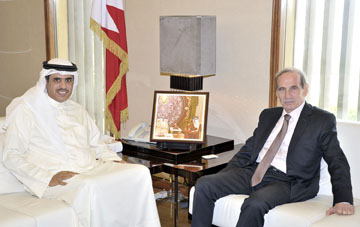 Manama, June 9 (BNA): Information Minister Ali bin Mohammed Al Rumaihi received today journalist Jihad Al-Khazin and commended his contributions as one of the most prominent Arab writers in defending national and Arab issues. He praised Al-Khazin’s support to security and stability in Bahrain and the Arabian Gulf as well as his stances against terrorism and hostile foreign interference. He also underlined the role of the Arab press in protecting the Arab national security.