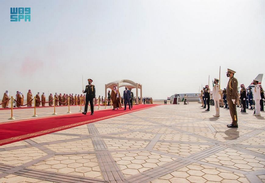 Riyadh, March 31, 2021, SPA -- At the invitation of the Custodian of the Two Holy Mosques King Salman bin Abdulaziz Al Saud, Prime Minister of the Republic of Iraq Mustafa Al-Kadhimi arrived in Riyadh today on an official visit to the Kingdom of Saudi Arabia. At King Khalid International Airport, he was received by His Royal Highness Prince Mohammed bin Salman bin Abdulaziz, Crown Prince, Deputy Prime Minister and Minister of Defense. An official reception ceremony was held for the Prime Minister of Iraq, where the national anthems of the two countries were played. Then, the Prime Minister exchanged greetings with Prince Faisal bin Bandar bin Abdulaziz, Governor of Riyadh Region; Faisal bin Khalid bin Abdulaziz, Advisor to the Custodian of the Two Holy Mosques; Prince Abdulaziz bin Salman bin Abdulaziz, Minister of Energy; Prince Dr. Abdulaziz bin Sattam bin Abdulaziz, Advisor to the Custodian of the Two Holy Mosques; Prince Turki bin Mohammed bin Fahd bin Abdulaziz, Minister of State and Cabinet Member; Prince Abdulaziz bin Saud bin Naif bin Abdulaziz, Minister of Interior; Prince Abdullah bin Bandar bin Abdulaziz, Minister of the National Guard; Prince Faisal bin Farhan bin Abdullah, Minister of Foreign Affairs; Speaker of the Shura Council Sheikh Dr. Abdullah bin Mohammed bin Ibrahim Al Al-Sheikh; Prince Faisal bin Abdulaziz bin Mohammed bin Ayyaf Al Muqrin, Mayor of Riyadh Region; ministers and commanders of military sectors. HRH Crown Prince also welcomed the official delegation accompanying the Prime Minister of Iraq. After that, HRH Crown Prince and the Prime Minister of Iraq left in an official motorcade for the Royal Court at Al-Yamamah Palace. --SPA