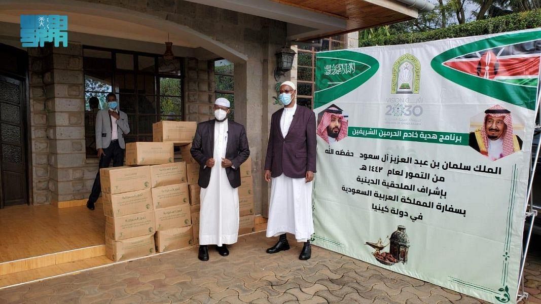 Nairobi, April 26, 2021, SPA -- The Ministry of Islamic Affairs, Call and Guidance, represented by the Religious Attaché Office at the Embassy of the Kingdom of Saudi Arabia in Nairobi, Kenya, has inaugurated here the Custodian of the Two Holy Mosques King Salman bin Abdulaziz Al Saud’s gift program of dates for the Muslims of Kenya on the advent of the holy month of Ramadan 1442AH, in the presence of Saudi Ambassador to Kenya Dr. Mohammed bin Abdulghani Khayyat, and Acting Religious Attaché Rashid bin Abdullah Al-Rashoud.