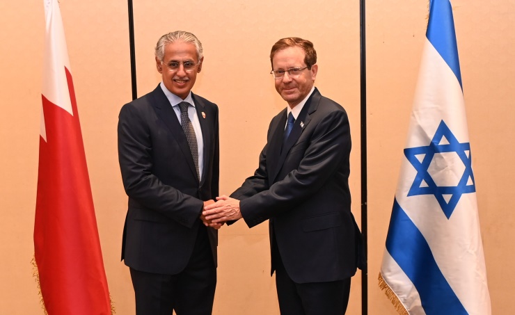 Tel Aviv, Oct. 30 (BNA): Israeli President Isaac Herzog received Minister of Industry and Commerce Zayed R. Alzayani, as part of the visit of the Bahraini economic delegation to Israel. The Israeli President discussed with the minister and his delegation the growing economic relations between the two sides. Alzayani said that the developments of the relations will promote opportunities for investment cooperation between the two countries with benefits for bilateral trade exchange. The delegation included members of the Bahraini business community.