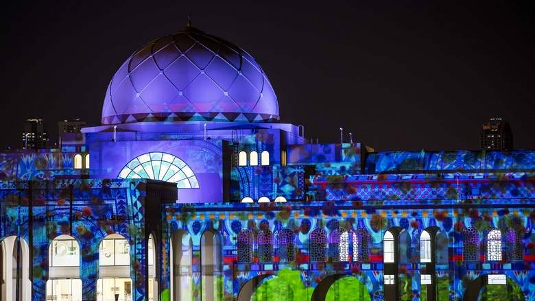 Cultural Palace at Cultural Square adds to the splendour of the location with a video mapping projection across the majestic building. Titled ‘Highlight of Poetry’, the show interprets and visualises the poetry of H.H. Dr. Sheikh Sultan bin Mohammed Al Qasimi, Supreme Council Member and Ruler of Sharjah, whose wisdom has shaped the Emirate.