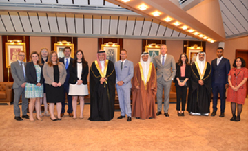 Manama, Mar. 26 (BNA): Justice, Islamic Affairs and Endowments Minister Shaikh Khalid bin Ali Al-Khalifa today received a US Congress staff delegation, currently on visit to Bahrain. The minister welcomed the delegation, hailing solid relations binding the Kingdom of Bahrain and the United States and steadily-growing joint ties in all fields. The two sides reviewed key issues of mutual interest, focusing on means of developing legal cooperation. The meeting was attended by Undersecretary for Legal Affairs Wael Bouallay.