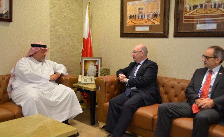 Manama, Oct. 28 (BNA): Justice, Islamic Affairs and Endowments Minister Shaikh Khalid bin Ali Al Khalifa received the British Minister of State for the Middle East and North Africa Alistair Burt on the sideline of his visit to participate in the 14th Manama Dialogue.