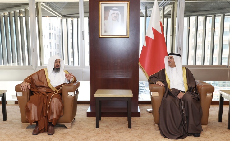 Manama, Oct. 16 (BNA): Minister of Justice, Islamic Affairs and Endowments, Nawaf bin Mohammed Al-Ma’awda, received today Saudi Undersecretary of the Ministry of Islamic Affairs, Shaikh Awad bin Sabti Al Anzi, and his accompanying delegation on the occasion of his official visit to the Kingdom of Bahrain.