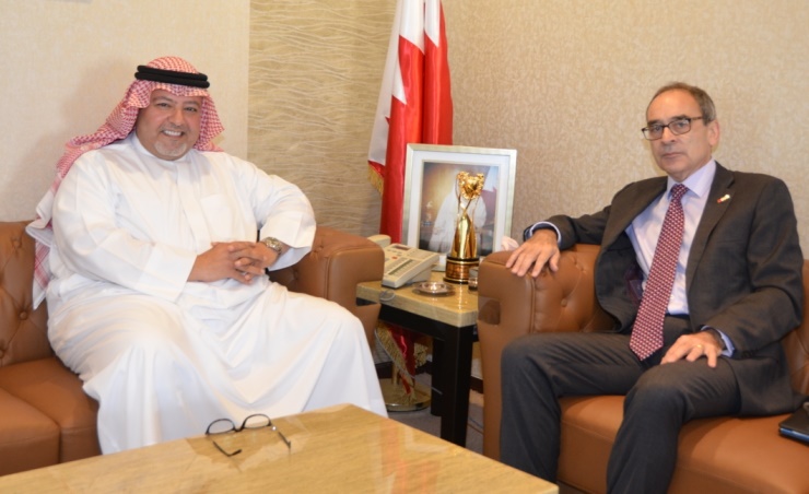 Manama, Apr. 10 (BNA): Justice, Islamic Affairs and Endowments Minister, Shaikh Khalid bin Ali Al Khalifa, received here today the UK Ambassador to Bahrain, Simon Martin.