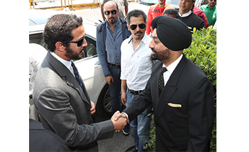 Mumbai, Apr. 22 (BNA): His Highness Shaikh Khalid bin Hamad Al Khalifa, First Deputy President of the Supreme Council for Youth, Honourary President of the Bahrain Martial Arts Federation (BMMAF), founder of Khalid Bin Hamad Mixed Martial Arts (KHK MMA), met with economic, sports and artistic figures and a number of media and press personalities in the Taj Mahal Hotel in Mumbai, India.