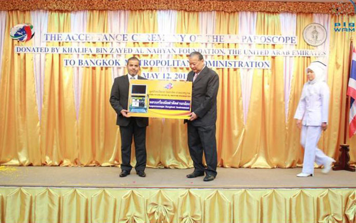 BANGKOK, 14th May, 2015 (WAM) -- The Khalifa bin Zayed Al Nahyan Foundation has provided Wetchakarunrasm Hospital in Thailand, one of nine major hospitals in Bangkok, with a laparoscope for abdomen surgery, as part of the support programmes provided by the organisation.