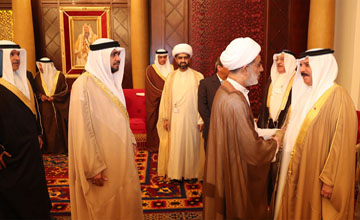 HM the King welcomed them all, stressing the importance of such gatherings which, he said, provide an opportunity to reach out to all people of Bahrain. He paid tribute to loyal citizens for their support, hailing their determination and commitment to serve their nation and build on the achievements of the development and reform process on the path towards the Bahrain of the Future.