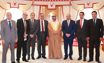 HM the King today at the Sakhir Palace received Al-Ahram Chairman, Head of Egypt's Press Syndicate, Abdel-Mohsen Salama, and the accompanying delegation.
