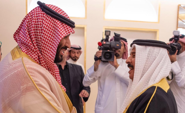 An official reception ceremony was held at the Sakhir Palace where the national anthems of the Kingdom of Saudi Arabia and Kingdom of Bahrain were played. HM the King and HRH Saudi Crown Prince inspected the Guards of Honour lined up to salute them.