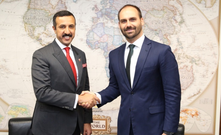 Kingdom's model for tolerance, peaceful coexistence highlighted in Bahrain, Brazil discussions Brasilia, Sept. 19 (BNA): The Undersecretary of the Ministry of Foreign Affairs for International Affairs, Dr. Shaikh Abdulla bin Ahmed Al Khalifa, met with Eduardo Bolsonaro, son of the President of Brazil and President of Foreign Relations Committee of the Lower House of the Federal Republic of Brazil, in Brasilia. The two sides discussed ways to strengthen relations between the two countries as well as regional and international issues of common concern. Dr. Shaikh Abdulla stressed the importance of continuing to strengthen the distinguished relations between Bahrain and Brazil for the benefit of the two friendly countries and to contribute to maintaining international peace and security. He reviewed the important role of parliament in Bahrain in consolidating the pillars of the democratic process as well as its constructive contribution to the comprehensive development and the adoption of community issues and its positive cooperation with the government to achieve the interests of citizens. Dr. Shaikh Abdulla also pointed out that Bahrain, under the leadership of His Majesty King Hamad bin Isa Al Khalifa, is steadily rooting sound democratic practices. He praised the role of parliament and its responsibilities in the decision-making process and in supporting the national action process through its firm constitutional principles fully supported by the people. He added that the parliament reflects the full and permanent respect for rights and freedoms to consolidate the modern civil state. The undersecretary explained that Bahrain has an integrated and effective system in all areas to ensure the promotion of a decent standard of living for its citizens and investments in its people as a national priority, in line with the principles of the Bahrain Economic Vision 2030 that are based on competitiveness, sustainability and justice. He also stated that Bahrain offers a leading civilizational and humanitarian model in tolerance and peaceful coexistence in light of the freedom and rights that reflect the leadership of Bahrain at the International level. Bolsonaro expressed his country's aspiration to strengthen cooperation and coordination with Bahrain, especially at the level of parliament, praising the Kingdom's remarkable development and reforms in many areas, wishing its people steady progress and prosperity.