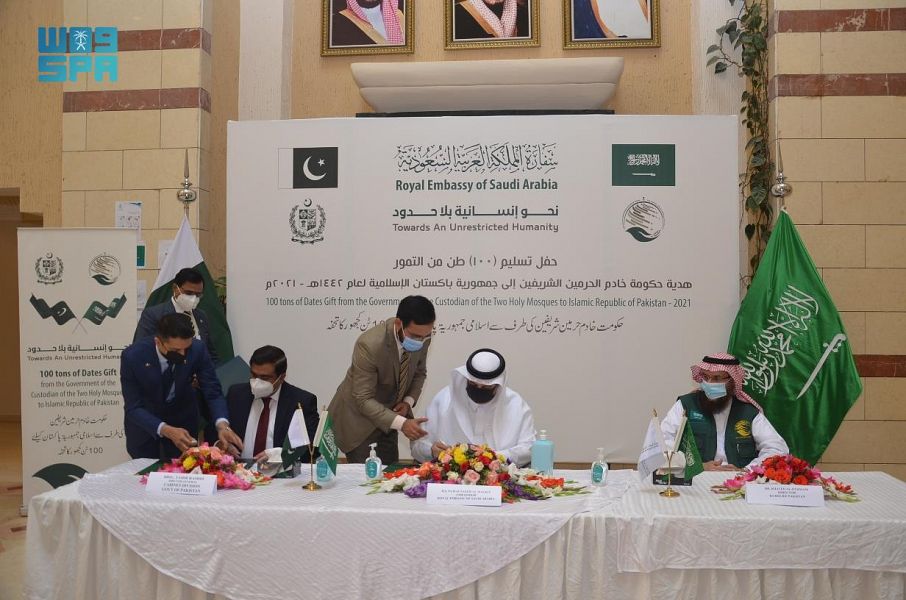 Islamabad, April 14, 2021, SPA -- King Salman Humanitarian Aid and Relief Center (KSrelief) delivered yesterday the Kingdom of Saudi Arabia's gift to the Islamic Republic of Pakistan, which included 100 tons of dates.
