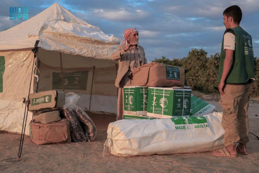 Marib, October 31, 2021, SPA -- King Salman Humanitarian Aid and Relief Center (KSrelief) on Saturday responded urgently to a humanitarian appeal launched by Yemeni families forced to flee from Al-Juba District to an open area near Al-Wadi District of Marib Governorate, due to the Houthi militia's deliberate aggression on their village. KSrelief provided shelter and food materials to these families as part of the urgent response to help the Yemeni people in crises. The families thanked the Kingdom of Saudi Arabia, represented by KSrelief, for the speedy response and providing all needed humanitarian assistance. --SPA