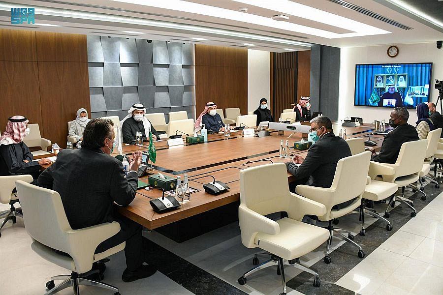 Riyadh, February 9, 2022, SPA -- Advisor at the Royal Court and Supervisor General of King Salman Humanitarian Aid and Relief Center (KSrelief) Dr. Abdullah bin Abdulaziz Al Rabeeah, at the center’s headquarters in Riyadh , met with UN Resident and Humanitarian Coordinator for Yemen David Gressly.