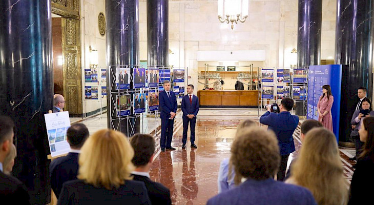 The exhibition presents photo and video materials that capture the most significant events in the life of the EAEU and the Eurasian Economic Commission (EEC) - the signing of documents, summit meetings, presentations of jointly implemented projects. Director of the First Department of the CIS countries of the Ministry of Foreign Affairs of Russia Mikhail Evdokimov and the representative of Kyrgyzstan, Director of the Department of Protocol and Organizational Support of the EEC Daniyar Turusbekov spoke at the opening.
