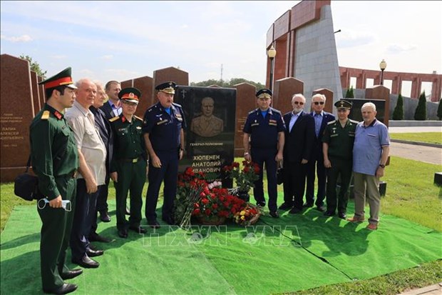 Moscow, August 6 (VNA) – A ceremony took place in suburban Moscow on August 4 to install a memorial stele dedicated to the late Sen. Lieut. Gen Anatoly Ivanovich Khiupenen, head of the Russian military expert delegation to Vietnam. The event, chaired by the Russian Defence Ministry, aimed to honour the late military official for his contributions to the Russian Air Force and Aerospace Defence Forces in the past and the Russian Aerospace Forces at present, as well as his role in the noble international mission to support the Vietnamese people in the anti-US war for national liberation. As an eminent military strategist, Khiupenen led the international mission in Vietnam from 1972-1975. He directly assisted the Vietnamese air defence force in striking back the US’s air attack on North Vietnam, contributing to the glorious victory of the campaign “Hanoi – Dien Bien Phu in the air” in December 1972. He was also bestowed with many noble distinctions of the Vietnamese Party and State, including the first-class Feat Order and Friendship Order. When retiring, he joined the leadership of the Russia – Vietnam Friendship Association (RVFA) and served as an advisor of the RVFA Chairman. He also made tireless dedication to developing the traditional friendship and comprehensive strategic cooperative partnership between Russia and Vietnam. The general passed away on July 13, 2019 and was buried at the Russian Defence Ministry’s central cemetery in suburban Moscow.-VNA