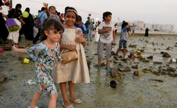 The festivity featured participation of productive families, folk dishes and handicrafts exhibition for the members of Al Jasra Centre, and folk songs performed while children were throwing the “Haya Baya” (small round woven baskets) on the sea.