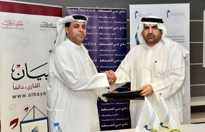 During a press conference at the Dubai Press Club, a partnership agreement was signed between Jamal bin Huwaireb, Managing Director of MBRF, and Dhaen Shaheen, CEO of the publishing sector at Dubai Media Incorporated, under which "The Knowledge Page" will be included in the newspaper for five days a week – from Sunday to Thursday.