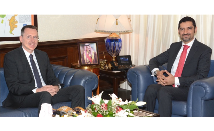 Manama, Oct. 24 (BNA): Electricity and Water Affairs Minister Eng. Wael bin Nasser Al Mubarak received German Ambassador to Bahrain, Kai Boeckmann, and praised the strong ties between the two friendly countries, reinforced by cooperation in various developmental fields. The two also discussed ways of enhancing cooperation in the fields of exchanging expertise and experiences, transferring knowledge in the field of electricity and water, building capacity and developing cooperation between Bahrain and Germany. They discussed the most important projects carried out by the Electricity and Water Authority in line with Bahrain’s 2030 Vision and its national strategy to achieve the requirements of urban and population growth. The ambassador congratulated the Minister on his appointment as Minister of Electricity and Water Affairs and thanked him for the welcome and the hospitality. He stressed his country's readiness to strengthen the existing cooperation in the electricity and water sectors to serve the interests and aspirations of the two friendly countries.