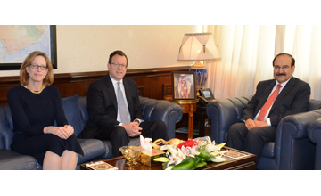 Dr. Mirza gave the visitor a presentation on the projects implemented by the Electricity and Water Authority (EWA) and the Sustainable Energy Unit, including the National Plan for Energy Efficiency and the National Energy Plan and some important renewable energy projects such as the 100-megawatt solar power project, net metering and the investment opportunities available to American companies in these fields.