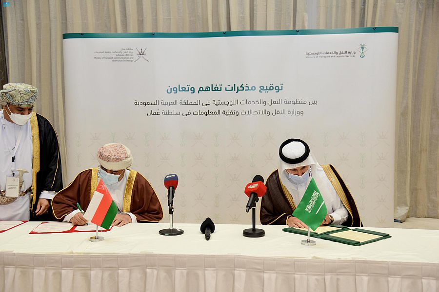 The MOUs were sealed during Al-Maawali and the accompanying delegation's visit to the Kingdom, during which they held a meeting with Al-Jasser, to discuss strengthening cooperation between the two countries, in light of both sides keenness to consolidate cooperation between the Kingdom and Oman in the Transport and logistics services sector, benefiting from the unique geographical location of the two countries and achieving the objectives of the national strategy for transport and services.