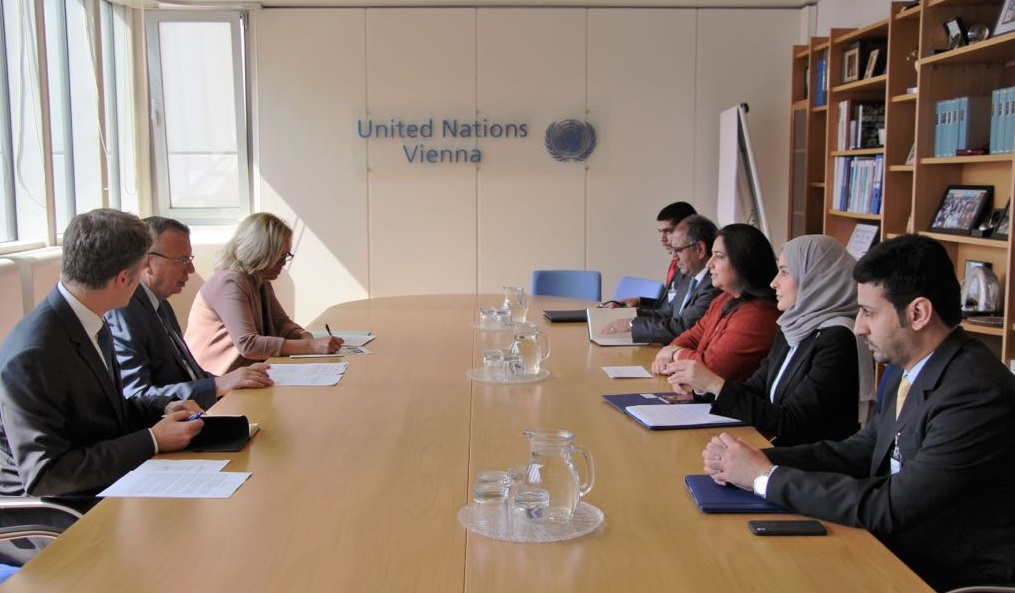 Manama, May 30 (BNA): Foreign Affairs Ministry Undersecretary,Dr. Shaikha Rana bint Isa bin Daij Al Khalifa, met the Executive Director of the United Nations (UN) Office on Drugs and Crime (UNODC) and the Director-General of the United Nations Office in Vienna (UNOV), Yuri Fedotov, during her official visit to the United Nations (UN) Office in Vienna.