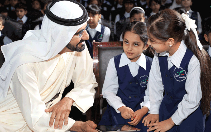 His Highness was speaking at the launch of the 'Mohammed Bin Rashid Initiative for smart Learning', which will cover all the schools across the country. The initiative to cost over one billion Dirhams will be implemented over a period of five years.