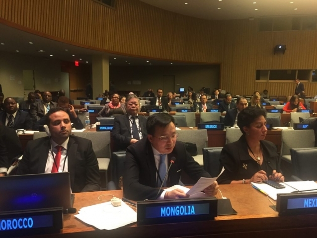 Ulaanbaatar /MONTSAME/ Mongolian delegates led by G.Unurbayar, State Secretary of Ministry of Labor and Social Welfare are attending the 50th session of the UN Commission on Population and Development of the UN Economic and Social Council (ECOSOC), which is taking place on April 3-7 in New York city. The session is themed “Changing population age structures and sustainable development”. In his speech delivered at a general discussion of the session, State Secretary G.Unurbayar mentioned that the government of Mongolia has been carrying out national policy and programs in accordance with decisions issued from United Nations' sessions and conferences on population and development. Then, he introduced some substantial actions being implemented in Mongolia in the scope of the ‘Sustainable Development Program 2030’ in recent years. In particular, State Secretary G.Unurbayar pointed out that the Parliament of Mongolia has made amendments to or adopted laws on child protection, child rights, encouraging youth development and social security of elders and the government's 'Mothers with salary’ program, which has recently put into effect. Concluding his speech, he confirmed that Mongolia is intending to fully realize goals brought forward on a national level within the SDG 2030 and continue implementing the Madrid International Plan of Action on Ageing of 2002, Action program of an International Conference on Population and Development held in Cairo in 1996.