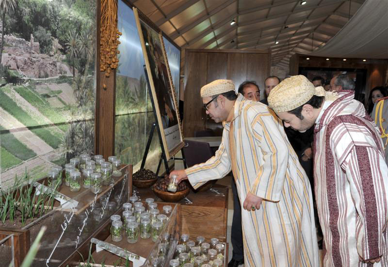 Erfoud, Morocco - Nov 13, 2011 (WAM) - King Mohammed the VI of Morocco on Saturday visited the UAE pavilion at the International Dates Fair which is organised by the Moroccan Ministry of Agriculture, Rural Development and Fisheries in Erfoud City, Morocco. Secretary General of the Khalifa International Date Palm Award Dr Abdul Wahab Zayed told WAM that he briefed the Moroccan king on the UAE's participation at the second edition of the event as well as on the Award and the studies it conducts on palm trees. He said that the UAE's participation further promotes the role the UAE plays in the development of date palm tree farming. Zayed also noted the support extended to efforts to promote palm tree agriculture by President His Highness Sheikh Khalifa bin Zayed Al Nahyan and His Highness General Sheikh Mohammed bin Zayed Al Nahyan, Crown Prince of Abu Dhabi and Deputy Supreme Commander of the UAE Armed Forces. He also the directives by Sheikh Nahyan bin Mubarak Al Nahyan, Minister of Higher Education and Scientific Research. - Emirates News Agency, WAM