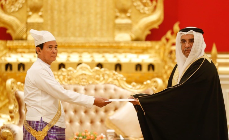 Naypyidaw, June 19 (BNA): President of the Republic of the Union of Myanmar, Win Myint, received the credentials of Ambassador Extraordinary and Plenipotentiary, Ahmed Abdulla Al Hajeri, as a Non-Resident Ambassador of the Kingdom of Bahrain to the Republic of the Union of Myanmar.