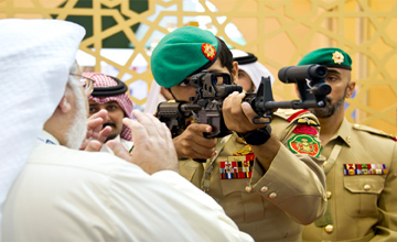 During the tour, HH Brigadier Shaikh Nasser and HH Major Shaikh Khalid listened to a briefing by representatives of the international companies on the key technological development and modern systems witnessed by the military industry of ground, air and naval defence weapons. "The unique feature of this event is its distinctiveness in bringing together the exhibition and the conference. It will serve all the countries of the world that focus their attention on combating terrorism and seek to attract senior military experts," HH Brigadier Shaikh Nasser said during the tour.